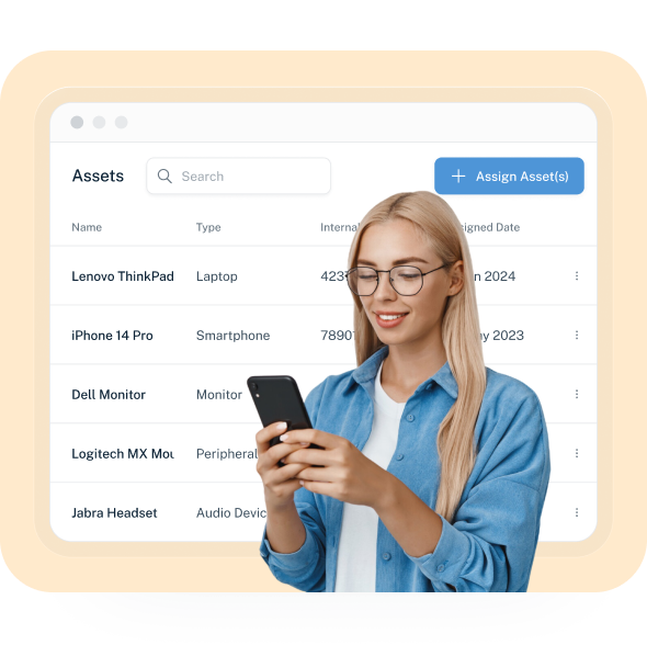 Monitor and manage assets assigned to employees, including returns and stock availability.
