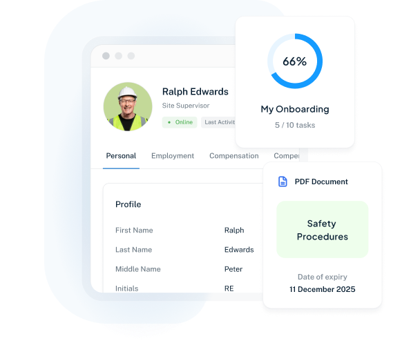 Track all employee data throughout their employment in a structured, centralized location. The system is secure and time-saving, giving you full visibility at all times.